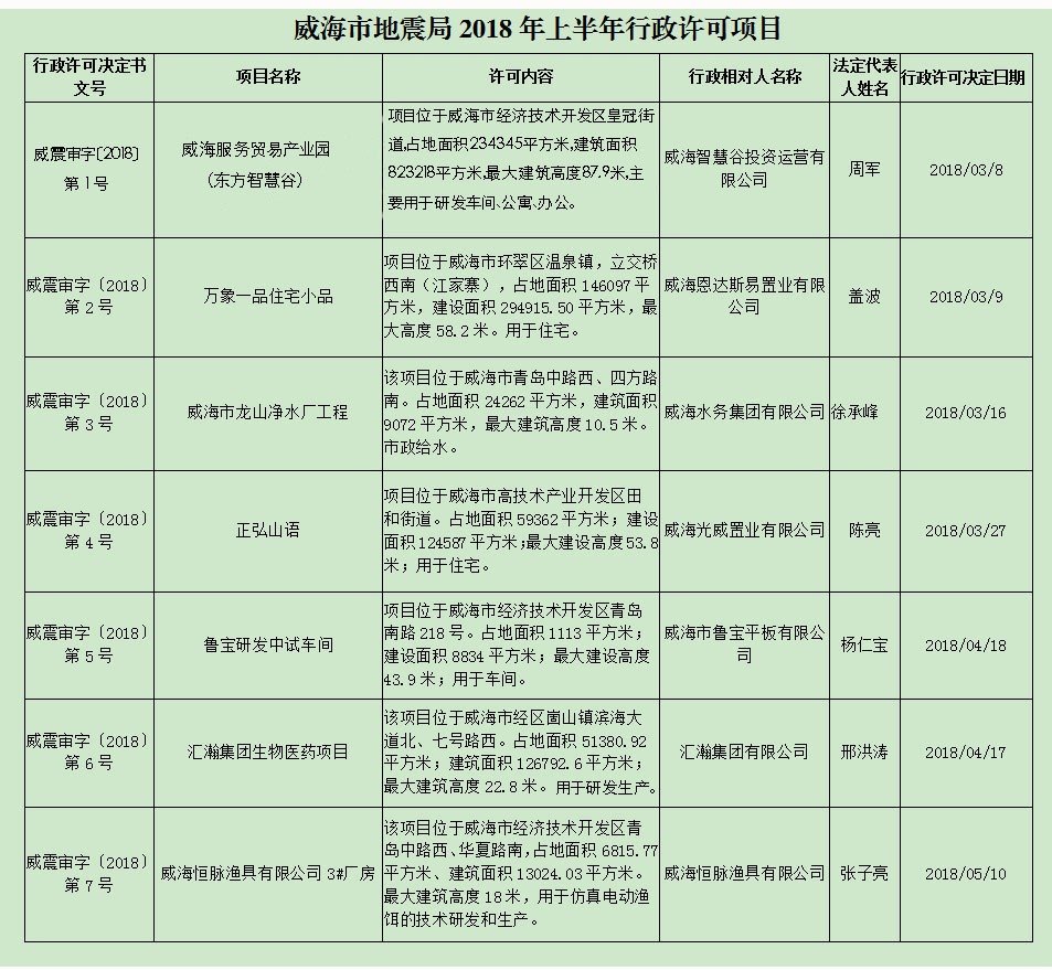 市地震2018年上半年建设工程抗震设防要求审批项目公示